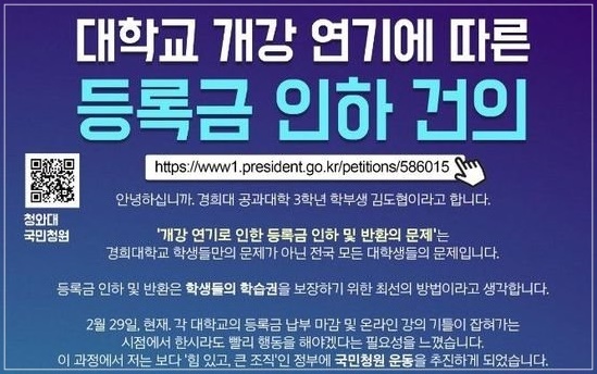 코로나19 사태에 따른 각 대학들의 개강 연기로 혼란이 가중되는 가운데 학생들의 대학 등록금 반환 요구가 거세지면서 '등록금 환불'이 가능할지 관심입니다.
