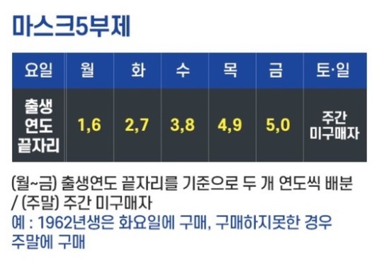 마스크 5부제 시행