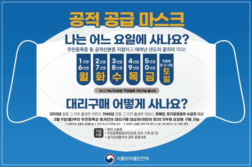 3월 9일부터 정부가 공평한 마스크 수급을 위해 내놓은 정책 ‘마스크 5부제’가 시행되고 있습니다.