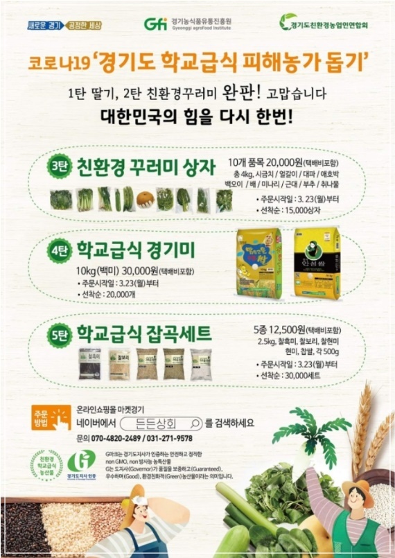 이어 지난달 23일부터 진행된 3~5탄 친환경꾸러미 ‘경기미·잡곡 판매행사’도 성황리 진행되고 있습니다.