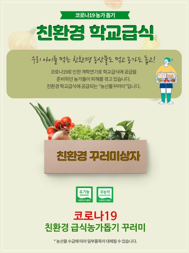 서울시는 한국친환경농업협회의 도움 요청을 받아 코로나19로 어려움을 겪고 있는 지역농가 돕기를 위해 마켓투유 에서채소, 한라봉, 천혜향 등으로 구성된 ‘친환경 농산물 꾸러미 구매 캠페인’에 나섰습니다.
