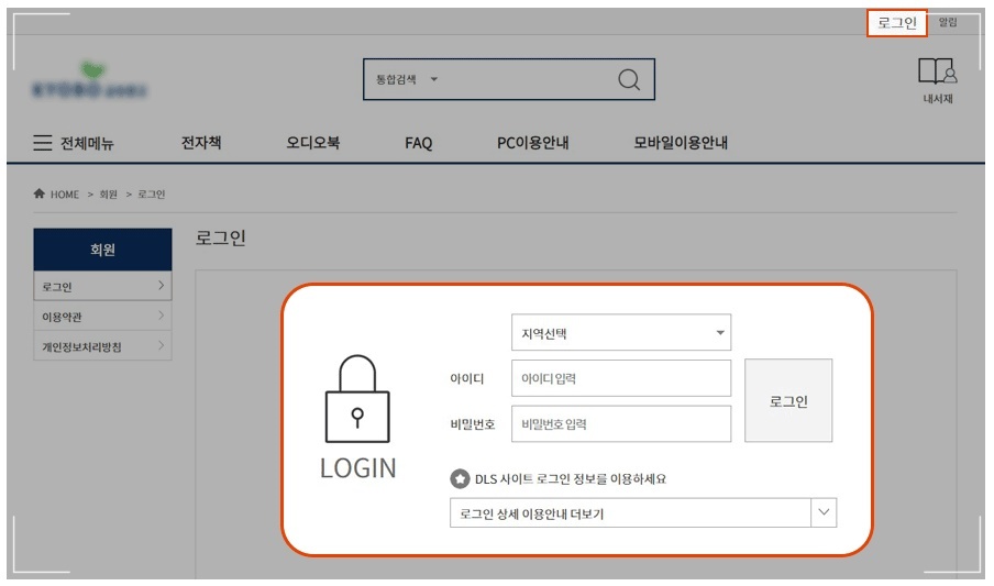 본인의 지역을 선택 한 후 기존 사이트의 정보로 로그인 하면 되는데 로그인이 되지 않는 경우 기존 사이트의 로그인 여부를 먼저 확인해봐야 합니다.