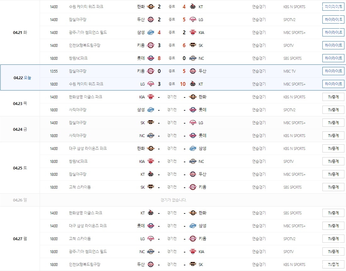 한화, KIA, LG, SK, 두산의 청백전을 계속 TV로 생중계해왔던 스포츠 전문 채널 스포티비(SPOTV), 스포티비2(SPOTV2)는 KBO 연습경기 또한 시청자의 안방으로 전달합니다.