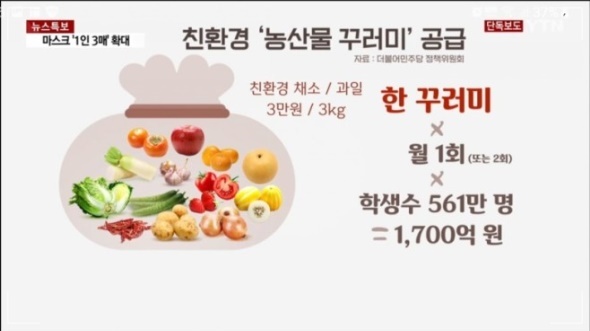 더불어민주당과 정부는 27일 초·중·고 가정에 채소와 과일을 담은 '농산물 꾸러미'를 지원하는 사업을 다음달부터 시행하고 8개 광역지방자치단체부터 시작해 확대한다고 밝혔습니다.