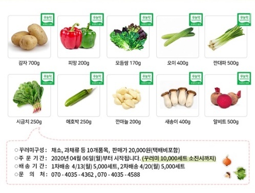 또한 지자체별로 친환경농산물과 일반농산물이 소비되는 비중을 고려해 다르게 꾸러미를 구성할 예정입니다.