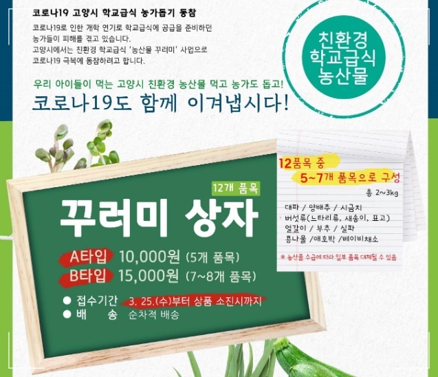 이번 지원사업이 학부모의 식자재 가계 부담을 줄이고 자녀 건강에 보탬이 될것입니다. 또한 꾸러미 사업 추진 방안 확대되면 농업인 소상공인에 도움이 될 것으로 보입니다.