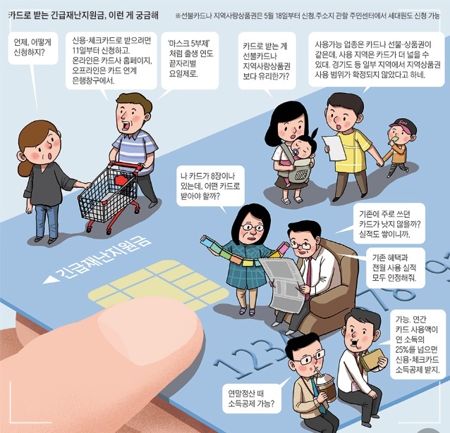 재난지원금 카드사별 혜택 가구당 최대 100만원씩 주는 긴급재난지원금 신청이 11일부터 시작됩니다. 지급받는 방법은 크게 두 가지로 신용·체크카드로 받느냐, 아니면 상품권·선불카드로 받느냐입니다. 온라인에서 신청할 수도 있고 오프라인으로도 가능합니다.