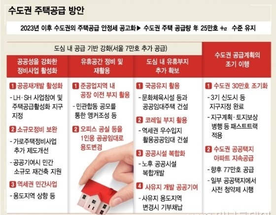 6일 국토교통부는 '수도권 주택공급 기반 강화 방안'을 발표했습니다. 2022년까지 주택 공급안정화에 주력해 서울 도심에 7만가구 부지를 추가 확보하고 2023년 이후 수도권에 연평균 25만가구 이상의 주택을 공급하겠다는 계획입니다.