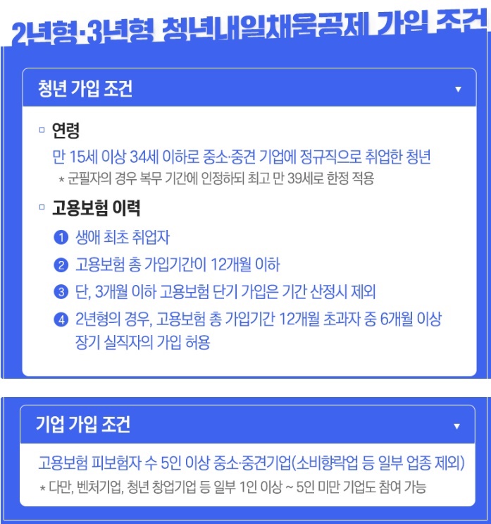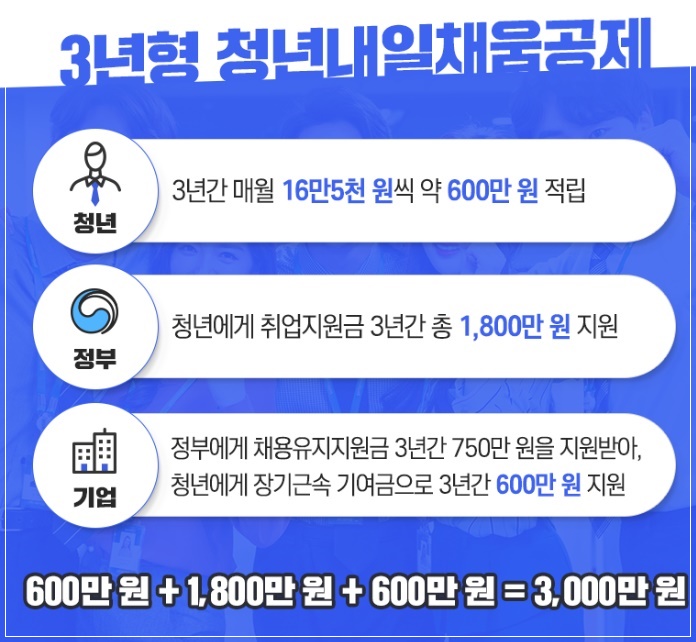 노동부는 "당초 사업 취지를 고려해 제한된 예산 조건에서 상대적으로 지원이 더 필요한 청년과 기업에 집중하기 위한 것"이라고 설명했습니다. 청년내일채움공제는 중소·중견기업에 취업한 청년이 수년 동안 근무하며 일정 금액을 적립하면 기업과 정부가 돈을 보태 목돈을 마련하도록 지원하는 사업으로 청년이 2년 동안 300만원을 적립해 1천600만원을 타는 '2년형'과 3년 동안 600만원을 적립해 3천만원을 타는 '3년형'이 있다. 청년의 중소·중견기업 취업과 장기근속을 유도하는 데 초점이 맞춰져 있습니다.