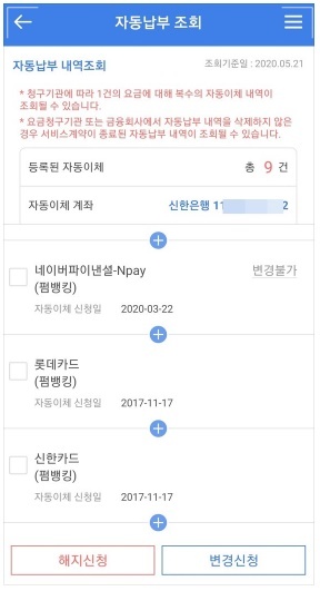 어카운트인포 앱을 통한 자동이체 계좌변경