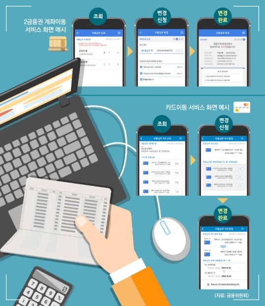 24일 금융위원회는 26일부터 계좌이동서비스를 통해 은행권과 제2금융권 상호 간 자동이체 계좌변경이 가능해진다고 밝혔습니다.