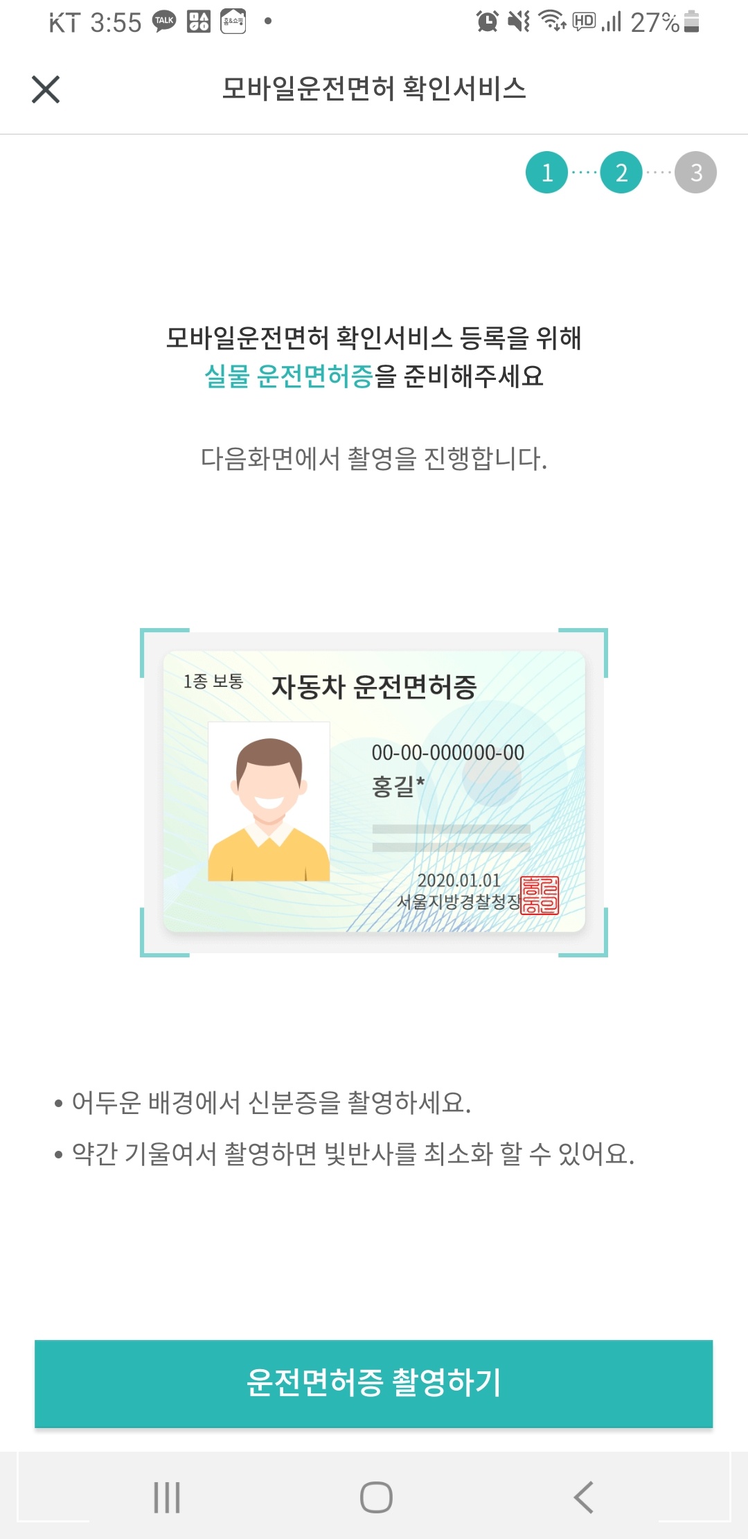 면허증 등록 단계에서 촬영된 사진을 가지고 경찰청, 도로교통공단 시스템과 연동해 진위 여부를 확인합니다.