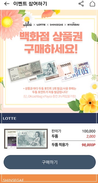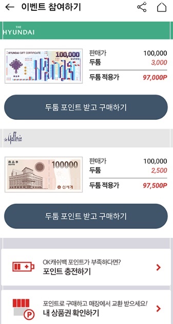 간혹 중고 거래의 경우 10% 정도까지 할인 구매가 가능하기에 조금이나마 구매 제품의 가격대를 낮추고자 하는 소비자들에게 수요가 좋습니다. 구입한 상품권은 각 매장에서 현금처럼 사용할 수 있으며, 신용카드 포인트로의 전환도 가능해 특히 카드사가 연계된 백화점 상품권의 인기는 점점 높아지고 있는 추세입니다.