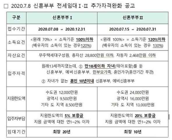 한국토지주택공사(LH)가 신혼부부 전세 임대Ⅰ·Ⅱ 유형의 입주 자격을 추가로 완화합니다.