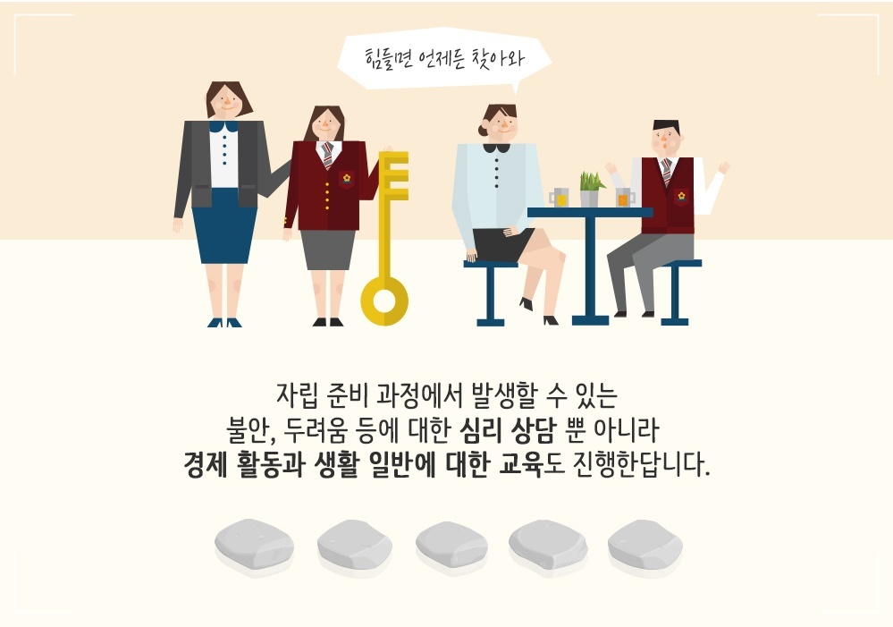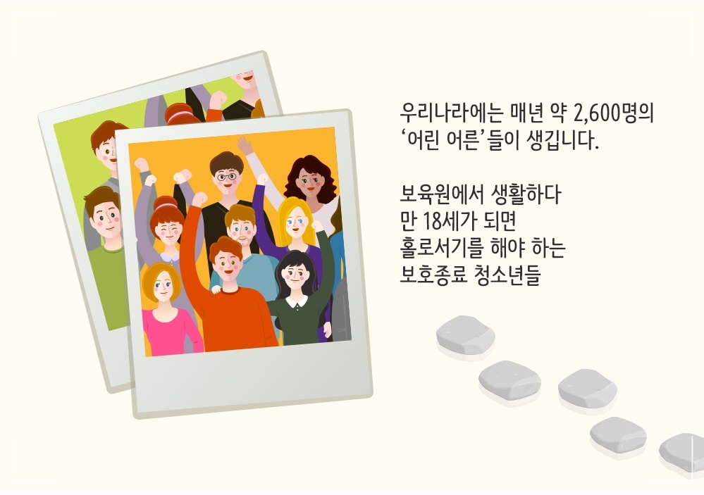 2014년 아동자립지원 통계현황 보고에 따르면 만 18세가 돼 보호가 종료되는 청소년은 매년 2000여 명. 정부에선 이들의 경제적 어려움을 덜어주고 원활한 사회 정착을 돕기 위해 ‘자립정착금제도’를 시행하고 있습니다.