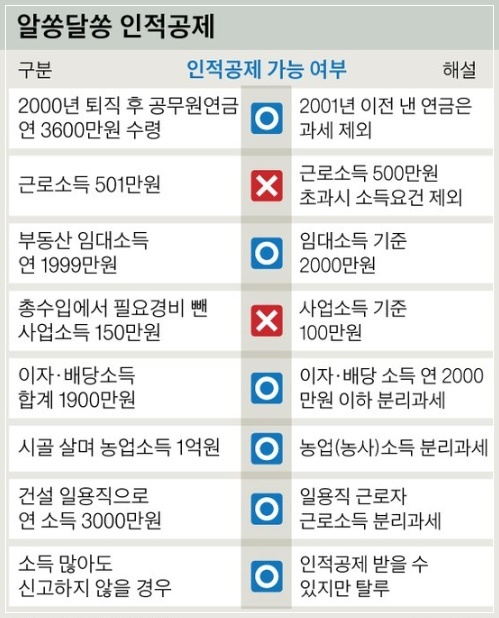 만일 본인의 부양가족 대상 중 총급여(연봉)가 500만원 이하인 근로자가 있다면 기본공제가 가능한 반면 이자,배당 등 금융소득은 연간 2000만원 이하라면 분리과세가 적용돼 기본공제를 받을 수 있습니다. 세전 이자소득 2000만원(금리 1.9% 기준)은 10억원을 예금했을 때의 금액입니다. 상장주식의 양도차익은 아무리 수익이 많이 나더라도 비과세가 적용돼 기본공제를 받을 수 있습니다.