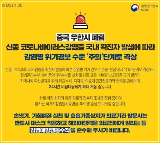 정부는 우한 폐렴 국내 확진 환자가 4명으로 늘어나는 등 확산 우려가 커지자 감염병 위기 경보를 ‘주의’에서 ‘경계’로 격상했습니다. 우한 폐렴 의심환자들은 병원을 방문할 때 다른 환자들과 접촉하지 않은 상태로 진료실까지 이동하는 선별진료 대상입니다. 이 방식을 지키지 않고 병원에 방문했다가 확진 판정을 받게 되면, 밀착 접촉자가 속출하게 됩니다.