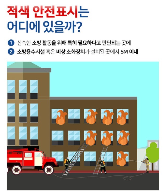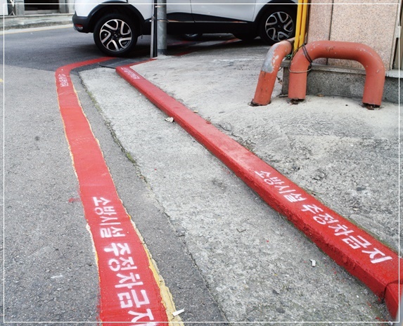 소방청에 따르면 온라인에서 화제가 되고 있는 빨간 실선은 ‘적색 안전표시’로 소방용수시설, 비상소화장치 또는 소방시설 등이 설치된 곳으로부터 각각 5미터 이내인 구역 중에 신속한 소방활동을 위해 특히 필요하다고 인정되는 장소를 뜻합니다. 2019년8월 1일부터 적용된 이 제도에 따르면 ‘적색 안전표시’가 표시된 구역에서는 주차뿐 아니라 잠시 정차하는 것도 불가능합니다.