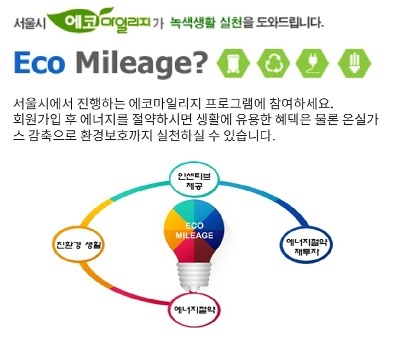 공공기관에서도 마일리지 제도가 애용되고 있습니다. 2009년부터 시작된 서울시의 에코마일리지가 대표적입니다. 지난해 회원 수가 200만명을 넘어선 에코마일리지는 서울시민의 삶 속을 파고들고 있습니다. 서울시민 5명 중 1명은 에코마일리지 회원인 셈입니다. 에코마일리지는 가정이나 건물에서 전기나 수도, 도시가스 등 에너지 사용을 줄이면 인센티브를 주는 시민 참여 프로그램입니다.
