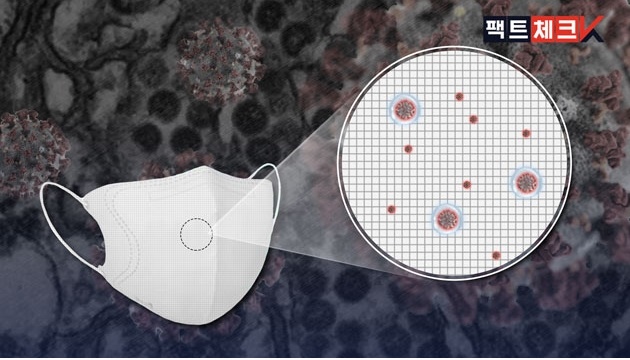 바이러스 자체 크기는 작지만, 바이러스가 퍼질 때는 사람의 비말에 섞이게 됩니다. 이렇게 되면 KF 마스크의 필터 구멍보다 커집니다. 또 앞서 언급한 식약처의 설명대로 KF가 걸러내는 기준은 입자의 '평균 크기'이므로 실제 더 작은 입자도 거를 수 있습니다. 또한 KF 마스크는 필터뿐 아니라, 정전기를 통해 이물질을 필터에 부착시켜 거릅니다.