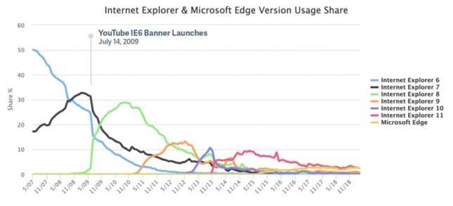 유튜브는 현재 새 정책 시행을 앞두고 인터넷 익스플로러로 이용시 상단의 노란 배너를 통해 브라우저 이동을 권고하고 있습니다. 인터넷 익스플로러는 여전히 국내에선 많이 쓰이는 브라우저 중 하나입니다. 시장조사기관 스탯카운터에 따르면 올해 1월 기준 국내 PC 웹브라우저 시장서 인터넷 익스플로러의 점유율은 15.76%에 달해 크롬에 이어 2위를 차지했습니다.