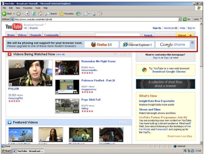 오는 3월부터 '인터넷 익스플로러'를 통해 유튜브를 시청할 수 없게 돼 익스플로러를 쓰는 상당수 국내 사용자들의 불편이 예상됩니다. 7일 업계에 따르면 3월부터 적용될 구글의 새로운 정책은 데스크톱 PC 사용자가 유튜브를 최신 버전(2017년 버전)의 UI(사용자 인터페이스)를 이용해 시청하도록 의무화했습니다.