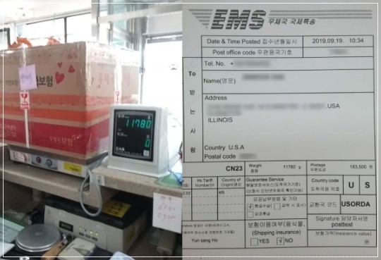 포장은 발송된 택배가 안전하게 해외에 도착할지를 판단하는 중요한 요소로 국내 택배보다 꼼꼼하게 해야 합니다. 전자제품, 유리, 도자기 등과 같이 파손되기 쉬운 물품이 포함되어 있다면 2중, 3중으로 꼼꼼하게 완충제를 감아주어야 하는데 과도하게 완충제를 사용하면 배송료가 추가로 나올 수 있기 때문에 무게와 부피가 비슷한 선에서 완충제를 감아준 뒤 꼭 테이프로 마무리 해야 합니다.