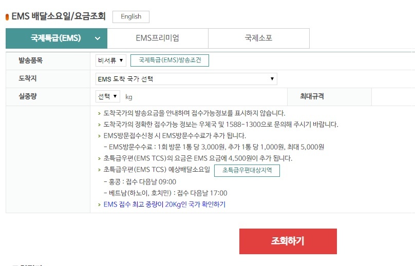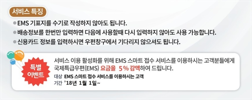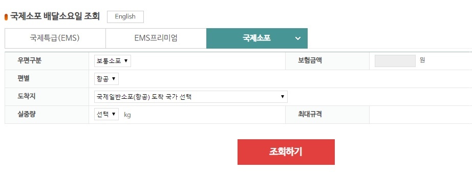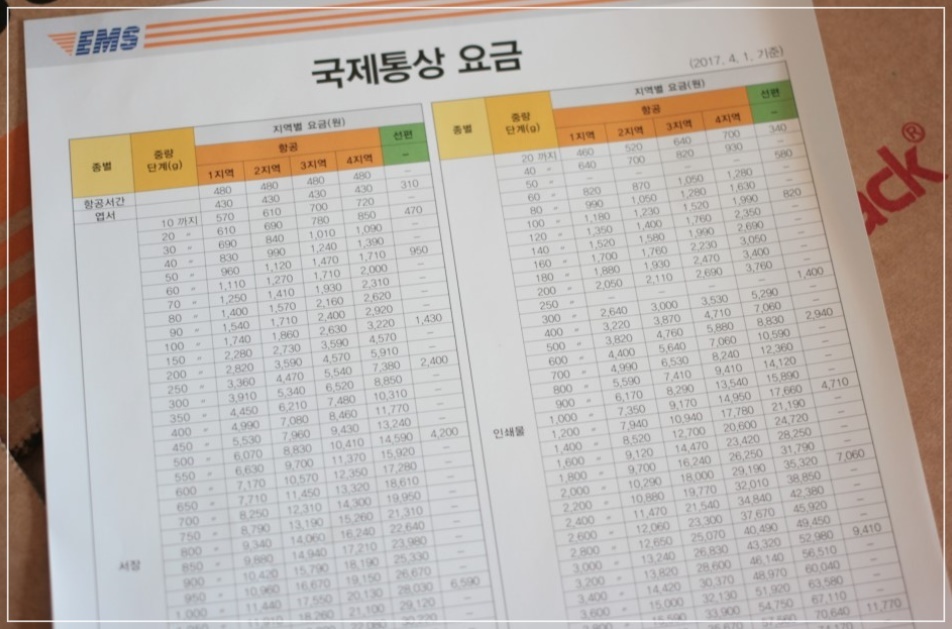 | 구분 | EMS 특급 소포 | 항공일반 소포 | 선편일반 소포 |