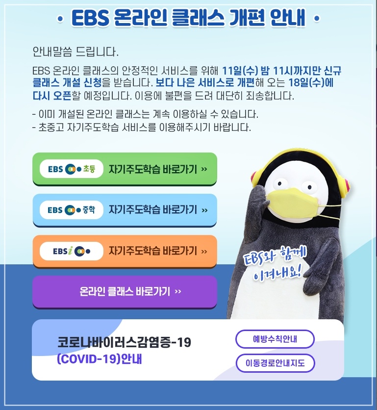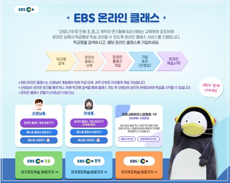 개학연기로 인해 학습결손이 우려되는 가운데 집에서도 할수 있는 온라인 클래스가 주목을 받고 있습니다. 대표적인 온라인 학습인 EBS 온라인 클래스는 교사가 개설한 온라인 클래스에 학생들이 참여해 수업도 듣고 학습관도 받고 퀴즈도 풀고 다채로운 교육활동이 이루어지는 온라인 서비스 입니다.