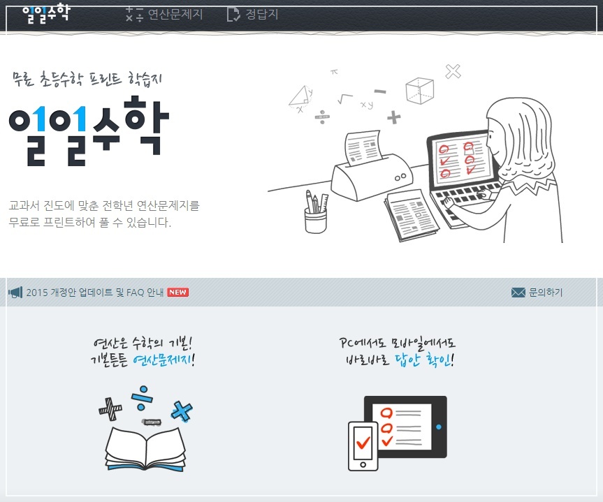 전학년 연산문제지를 무료로 인쇄하여 풀 수 있는 사이트